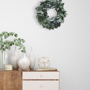 Der Mooskranz SARRO verkörpert natürliche Schönheit und minimalistische Eleganz. Das feine stabilisierte Moos in Grüntönen bildet die Grundlage, ergänzt durch dichte Eukalyptusblätter in erdigen Grautönen. Die Kombination dieser Elemente schafft ein harmonisches Design, das Ihrem Raum Ruhe und Raffinesse verleiht.