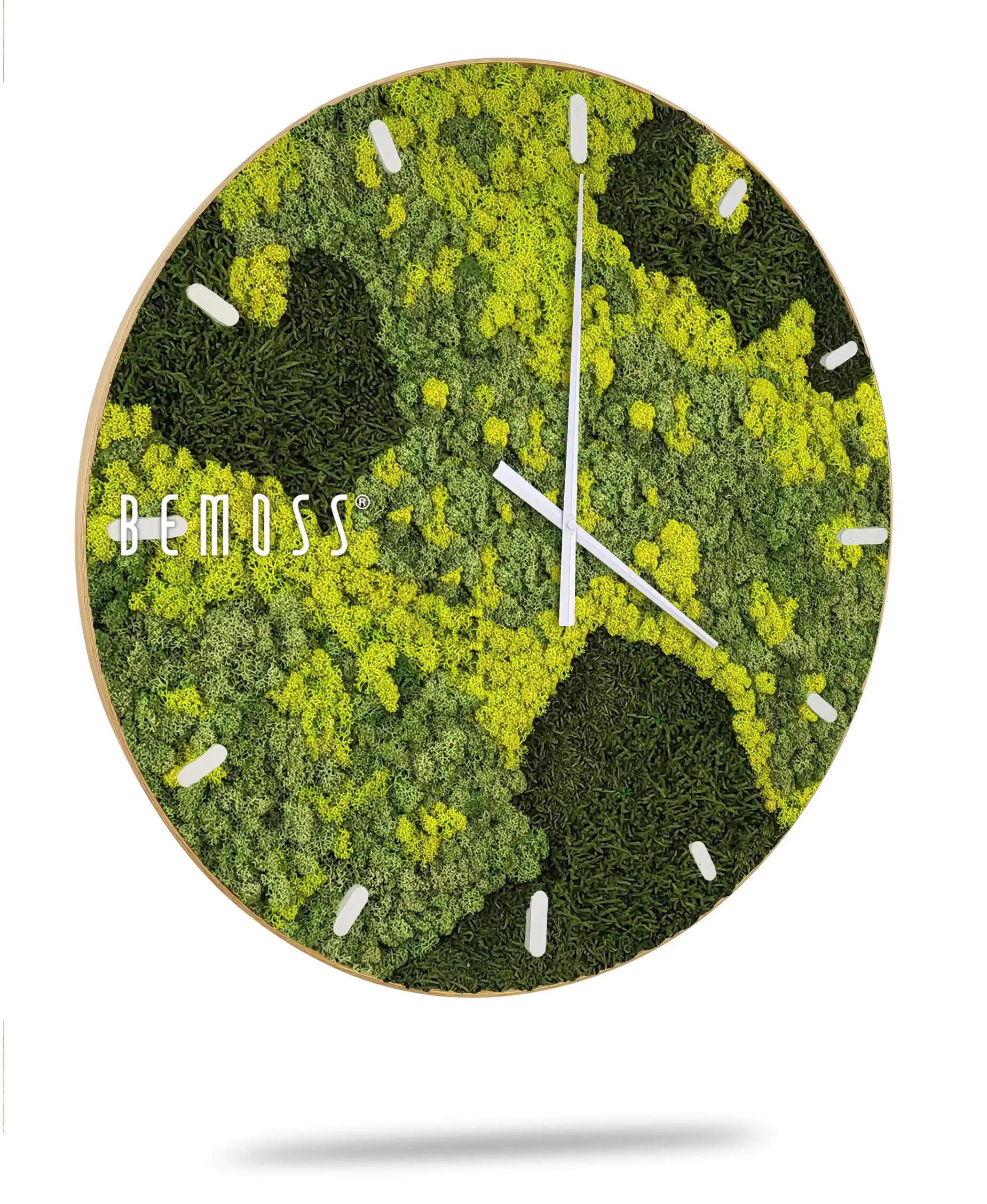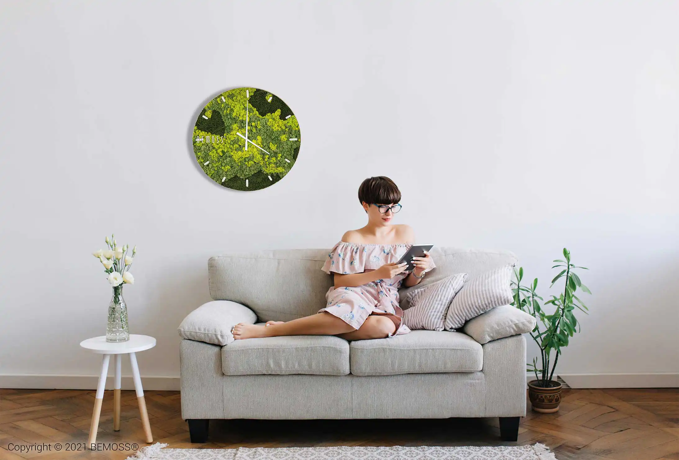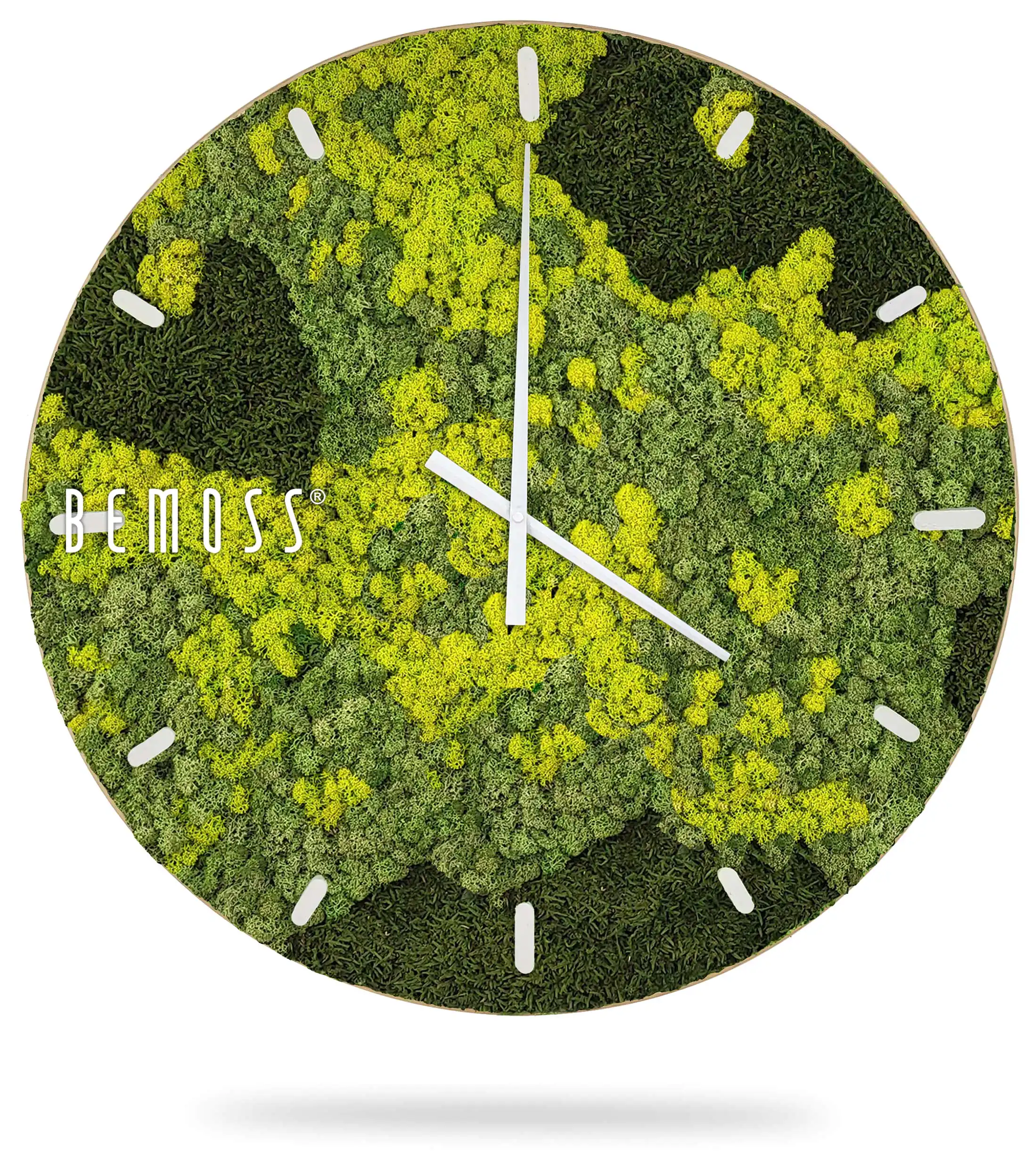 Die Moosuhr BEMOSS® ORTHO LIME mit Ziffernblatt bringt ein einzigartiges natürliches Design in Ihr Interieur. Die Kombination aus lebendigen Limetten- und Grüntönen, ergänzt durch dunkle Moosnuancen, schafft ein dynamisches visuelles Erlebnis, das jeden Raum belebt. Die Oberfläche der Uhr besteht aus 100% natürlichem stabilisiertem Moos, das pflegeleicht ist und seine frische Farbe und Struktur bewahrt.