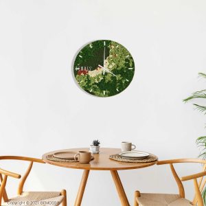 Die Uhr bietet die Möglichkeit, aus verschiedenen Farben für Rahmen und Zeiger zu wählen, was eine einfache Anpassung an Ihren Geschmack und Raum ermöglicht. Sie ist in standardisierten Größen erhältlich, kann aber auch nach Maß gefertigt werden. Dieses einzigartige Stück verleiht Ihrem Interieur Stil und einen Hauch Natur.