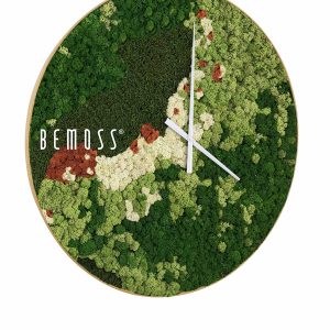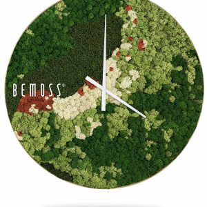 Die Moosuhr BEMOSS® ORTHO MANGO bringt ein außergewöhnliches, von der Natur inspiriertes Design in Ihr Zuhause. Die Oberfläche der Uhr zeigt Grüntöne mit Creme- und Orangetönen als Akzente. Gefertigt aus 100% natürlichem stabilisiertem Moos, ist sie ökologisch, pflegeleicht, hypoallergen und bietet akustische Eigenschaften. Handgefertigt in der Schweiz.
