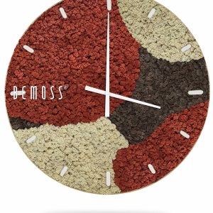 Die Moosuhr BEMOSS® ORTHO SIENNA mit Ziffernblatt ist die perfekte Kombination aus natürlichen Farben und elegantem Design. Bordeaux-, Beige- und dunkle Brauntöne schaffen eine starke visuelle Harmonie. Hergestellt aus 100% natürlichem stabilisiertem Moos, ist sie ökologisch, hypoallergen, pflegeleicht und verfügt über akustische Eigenschaften. Ziffernblatt, Rahmen und Zeiger können Ihren Vorlieben entsprechend angepasst werden.