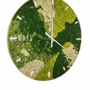 Die Moosuhr BEMOSS® ORTHO SPRING mit Ziffernblatt verbindet die Funktionalität einer Uhr mit faszinierendem Design natürlicher Kunst. Die Oberfläche ist mit 100% natürlichem stabilisiertem Moos bedeckt, das sein frisches Aussehen ohne Bewässerung oder Pflege bewahrt. Die satten Grüntöne gehen in helle Gelb- und Cremetöne über, die an blühenden Frühling und frische Natur erinnern.