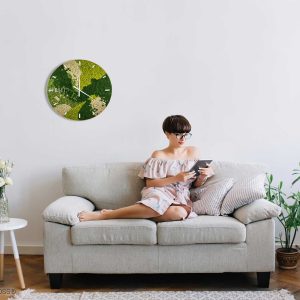 Es stehen verschiedene Farben für Rahmen, Zeiger und Ziffernblatt zur Verfügung, sodass Sie die Uhr ganz nach Ihren Vorstellungen anpassen können. Erhältlich in standardisierten Größen, fertigen wir sie auch gerne maßgeschneidert nach Ihren Wünschen an. Lassen Sie diese Uhr als einzigartiges Accessoire hervorstechen, das jeden Raum belebt und die Magie der Natur in Ihr Zuhause bringt.