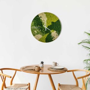 Die Uhr wird handgefertigt in der Schweiz aus 100% natürlichem stabilisiertem Moos, was ihre Pflegeleichtigkeit, Ökologie, Hypoallergenität und hervorragende akustische Eigenschaften garantiert. Das stabilisierte Moos benötigt keine Pflege, bewahrt aber seine natürliche Schönheit und Struktur.