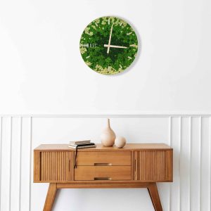 Die Uhr ist pflegeleicht, das bedeutet, sie behält ihr frisches Aussehen ohne Bewässerung oder spezielle Pflege. Das stabilisierte Moos ist zudem hypoallergen und eignet sich für Haushalte mit Allergikern. Dank ihrer akustischen Eigenschaften trägt die Uhr zur Reduzierung von Geräuschen im Raum bei. Dieses ökologische Accessoire ist ideal für Liebhaber eines nachhaltigen Lebensstils.