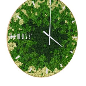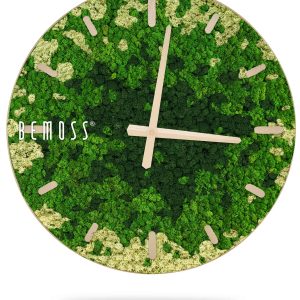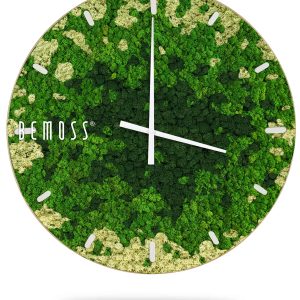 Die Moosuhr BEMOSS® SPLASH Green mit Ziffernblatt verbindet die einzigartige Schönheit der Natur mit stilvollem Design, das jeden Raum belebt. Die Oberfläche der Uhr besteht aus 100% natürlichem stabilisiertem Moos, handverarbeitet in der Schweiz. Die grünen und beigen Moostöne erinnern an die beruhigende Atmosphäre von Waldgebieten, und die Uhr ist mit Ziffernblatt in verschiedenen Farbvarianten erhältlich, ganz nach Ihren Vorlieben.