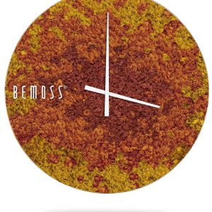 Die Moosuhr BEMOSS® SPLASH Sienna vereint Natur und Funktionalität perfekt. Die Oberfläche dieser Uhr ist mit 100% natürlichem stabilisiertem Moos bedeckt, das handgefertigt in der Schweiz hergestellt wird und so Einzigartigkeit und Qualität garantiert. Die reiche Farbpalette warmer Gelb- und Brauntöne erzeugt das Gefühl einer herbstlichen Landschaft, die Harmonie, Gemütlichkeit und natürlichen Charme in jeden Raum bringt.