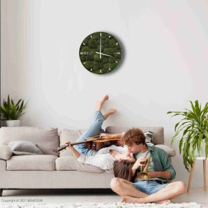 Diese Uhr wird in der Schweiz handgefertigt aus 100% natürlichem, stabilisiertem Moos, das keine Pflege benötigt und sein perfektes Aussehen über viele Jahre bewahrt. Sie ist ökologisch, hypoallergen und dank ihrer akustischen Eigenschaften hilft sie, den Schall im Raum zu dämpfen und trägt so zu einer ruhigeren Atmosphäre bei.