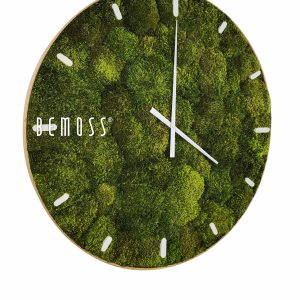 Die Moosuhr Siberian mit Ziffernblatt ist ein Symbol für die Verbindung von natürlicher Schönheit und Funktionalität. Die Oberfläche besteht aus sattgrünem, stabilisiertem Moos, das eine feine hügelige Reliefstruktur bildet und unberührte nordische Wälder erinnert. Dieses detaillierte natürliche Muster verleiht der Uhr eine authentische Atmosphäre und verwandelt jeden Raum in eine Oase der Ruhe.