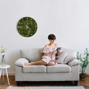 Die Uhr wird in der Schweiz handgefertigt aus 100% natürlichem, stabilisiertem Moos, das keine Pflege benötigt und seine frische Farbe über viele Jahre bewahrt. Das stabilisierte Moos ist zudem ökologisch und hypoallergen, was es ideal für Räume macht, in denen Sauberkeit und ein gesundes Umfeld wichtig sind. Dank der akustischen Eigenschaften trägt die Uhr zur Verbesserung der Raumakustik bei.