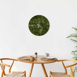 Die Moosuhr Siberian bringt den Zauber der Natur in Ihr Interieur mit satten grünen Tönen des stabilisierten Mooses. Diese Uhr wird in der Schweiz handgefertigt aus 100% natürlichem, stabilisiertem Moos, das ökologisch, hypoallergen, wartungsfrei ist und zudem die akustischen Eigenschaften des Raumes verbessert.