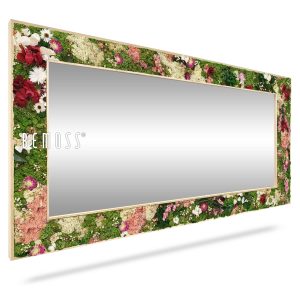 Der quadratische Moos Spiegel PFLANZEN Huelma ist ein Kunstwerk, das die Praktikabilität eines Spiegels mit der Schönheit der Natur vereint. Sein Rahmen ist mit 100% natürlichem stabilisiertem Moos und wunderschönen Blumen in Rosa-, Rot-, Weiß- und Grüntönen geschmückt, die dem Spiegel eine besondere Eleganz und lebendige Atmosphäre verleihen. Der Spiegel erinnert an einen blühenden Garten und belebt jeden Raum, sei es Wohnzimmer, Flur oder Badezimmer.
