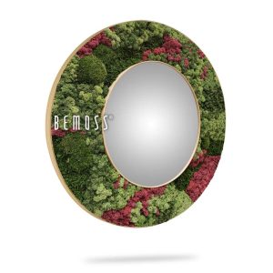 Bringen Sie ein Stück Natur in Ihr Interieur mit dem runden Spiegel BEMOSS® ORTHO Burgundy! Der Rahmen ist verziert mit einer Kombination aus 100% natürlichem, stabilisiertem Moos in satten grünen und weinrot-violetten Tönen, die einen wunderschönen Kontrast schaffen. Jedes Stück ist handgefertigt in der Schweiz, pflegeleicht und hypoallergen, sodass es sein Aussehen ohne Bewässerung oder Licht behält.