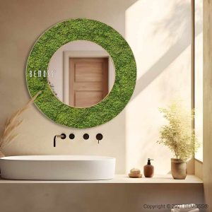 Beleben Sie Ihren Raum mit der einzigartigen Kombination aus Natur und Eleganz durch den runden Spiegel FLACHMOOS Light! Der Rahmen, bedeckt mit 100% natürlichem, stabilisiertem Moos in frischem Grün, verleiht dem Interieur einen natürlichen Akzent und benötigt keine Pflege, da er pflegeleicht und hypoallergen ist.