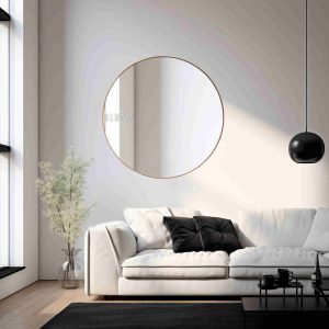 Eleganter runder Spiegel mit einem fein schlanken Rahmen von 30 mm Höhe, der sein minimalistisches Design perfekt hervorhebt. Der tiefer eingelassene Spiegel bietet einen einzigartigen Effekt, ideal für moderne Interieurs. Verschiedene Größen und Farbvarianten der Rahmen stehen zur Auswahl, sodass Sie genau das wählen können, was Ihrem Stil entspricht.